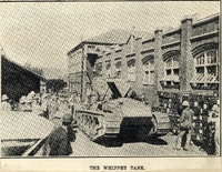 Newspaper clipping titled: "The Whippet tank" Newspaper clipping titled: "The Whippet tank", showing a military tank also known as "The Medium Mark A Whippet" which was a British tank intended for fast mobile assaults.