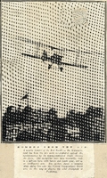 Newspaper clipping showing a scouting plane flying low over the Central Commissioner Street area on the way to observe the rebel stronghold at Fordsburg Newspaper clipping showing a scouting plane flying low over the Central Commissioner Street area on the way to observe the rebel stronghold at Fordsburg. The caption below the photograph reads: "Bombed from the air: A notable feature of the Red Revolt on the Witwatersrand has been the fine work accomplished against the revolutionaries by the newly-established South African Air Force. The aeroplanes have been invaluable, both on a fighting force with bombs and Lewis guns, and as an intelligence arm. The picture shows a scouting 'plane flying low over the Central Commissioner Street area on the way to observe the rebel stronghold at Fordsburg.".