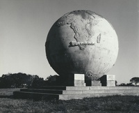 View of the Karel Landman Monument with F G Butler and Ken Robinson seated on the steps The Karel Landman Monument in the Sundays River Valley Rural, Eastern Cape, was designed by Gerard Moerdyk and built by the Lupini Brothers. It was unveiled on 16 December 1939 by W A L Landman. It honours Karel Landman who farmed in this area until 1837 when he became a leader in the Great Trek. He led a party of 180 Trekkers and their servants on a trek of 885 kilometres into Natal where he was prominent in several battles with the Zulus and he was second in command of the Boer forces at the pivotal battle of Blood River. The commemoration of Karel Landman and his trek, in this 3m globe with an ox wagon traversing it, was an initiative of the National Party and the councils of the Dutch Reformed Church in two neighbouring villages, Alexandria and Paterson. Legend has it that the councils could not agree which village should 'host’ the monument, so it was placed on this remote koppie overlooking the surrounding countryside, between the two villages.,F G Butler (donor)
