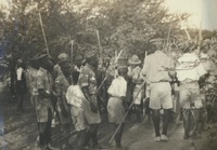 African clergyman James Arthur Calata with Mrs E.C. Butler and other women A photograph album compiled by Mary Butler, containing photographs of Wayfarers, Sunbeams and Pathfinders, mostly in Cradock. Two newspaper clippings and a handwritten concert programme included. There are three photographs of Rev. James Arthur Calata's young daughters, and he himself is included in two photographs. This photograph showing a Mrs E.C. (Alice Eyre) Butler with Wayfarer officers and Rev. James Arthur Calata