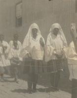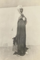 A location innocent A photograph album compiled by Mary Butler, containing photographs of Wayfarers, Sunbeams and Pathfinders, mostly in Cradock. Two newspaper clippings and a handwritten concert programme included. There are three photographs of Rev. James Arthur Calata's young daughters, and he himself is included in two photographs. This photograph showing a woman wearing a veil, her face is smeared with clay
