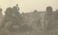 Cubs camping A photograph album compiled by Mary Butler, containing photographs of Wayfarers, Sunbeams and Pathfinders, mostly in Cradock. Two newspaper clippings and a handwritten concert programme included. There are three photographs of Rev. James Arthur Calata's young daughters, and he himself is included in two photographs. This photograph showing a group of young boys, known as Cubs and Jeff (wearing a cap). They are sitting around fire in a camp outing