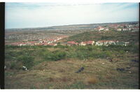 Looking south over desecrated Swartkops River valley towards the old Cradock Place (Papenkuilsfontein) from kwaMagxaki Hill Nice houses in centre photo overlooking urban sprawl beyond. Bethelsdorp Saltpan near top of photo, thinned out original veld in foreground in which Sanseviera plants thrive. More good type homes behind photographer.
