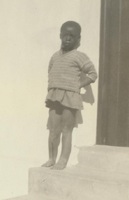 James Arthur Calata's daughter A photograph album compiled by Mary Butler, containing photographs of Wayfarers, Sunbeams and Pathfinders, mostly in Cradock. Two newspaper clippings and a handwritten concert programme included. There are three photographs of Rev. James Arthur Calata's young daughters, and he himself is included in two photographs. This photograph showing one of James Arthur Calata's daughters standing on the stoep. J.A. Calata had three daughters, namely, Nontsikelelo, Noluthando and Vuyiseka (born in 1922)