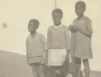 James Arthur Calata's three daughters A photograph album compiled by Mary Butler, containing photographs of Wayfarers, Sunbeams and Pathfinders, mostly in Cradock. Two newspaper clippings and a handwritten concert programme included. There are three photographs of Rev. James Arthur Calata's young daughters, and he himself is included in two photographs. This photograph showing James Arthur Calata's three daughters standing next to a house. J.A. Calata had three daughters, namely, Nontsikelelo, Noluthando and Vuyiseka (born in 1922)