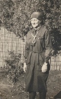 Joyce Brown - a Wayfarer Officer A photograph album compiled by Mary Butler, containing photographs of Wayfarers, Sunbeams and Pathfinders, mostly in Cradock. Two newspaper clippings and a handwritten concert programme included. There are three photographs of Rev. James Arthur Calata's young daughters, and he himself is included in two photographs. This photograph showing Joyce Brown, a Wayfarer Officer wearing her uniform, 1929