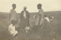 Mrs Kwaza with Sunbeams camping A photograph album compiled by Mary Butler, containing photographs of Wayfarers, Sunbeams and Pathfinders, mostly in Cradock. Two newspaper clippings and a handwritten concert programme included. There are three photographs of Rev. James Arthur Calata's young daughters, and he himself is included in two photographs. This photograph showing Mrs Mkwaza with Sunbeams camping. Sunbeams, a church group for young girls and boys, is a program for children to develop skills like camping, sports, personal health