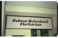 Notice over entrance 3 to the Selmar Schonland Herbarium at the Albany Museum, Grahamstown The new name was given in honour of Dr. Selmar Schonland, former Director of the Museum and Keeper of the Herbarium, when Rhodes University Herbarium was merged with the Albany Museum Herbarium in 1990's.