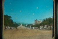 Laying of the foundation stone of the chancel of the Cathedral of St Michael and St George on 29 January 1890 View from the north side of Church Square showing the laying of the foundation stone of the chancel of the Cathedral of St Michael and St George by the Governor, Sir Henry Loch, on 29 January 1890. The camera of F. W. Hepburn is visible in the upper left window of 'T.H. Parker', a stone building in the background.,Donated by Martin Plaut, 2015