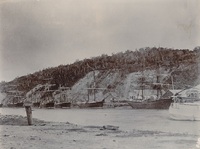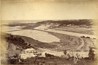View of the Kowie River showing ships at anchor, an ox-wagon and riverside buildings View of the Kowie River showing ships at anchor, an ox-wagon and riverside buildings. Hepburn and Jeanes photographers.