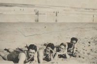 Fitzim at Kowie in March 1922 Photograph of four young men lying down on sand at the beach