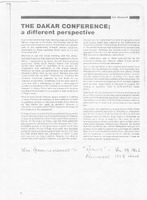The Dakar Conference: a different perspective E.K. Moorcroft's article on the Dakar Conference - the political discussions held in Dakar, Senegal, between the 9th and 12th of July 1987, between members of IDASA and the ANC. Article appeared in the journal titled "Reality: a journal of liberal and radical opinion", vol. 19, no. 6, issue dated November 1987.