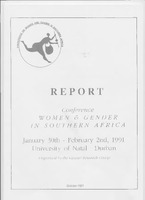 Report of the Conference on Women and Gender in Southern Africa, 30 January to 3 February 1991 Women’s studies and courses which incorporate gender into their analysis have slowly, over the last five or six years, been gaining a toe-hold at South African universities. More and more academics, most of them women, are doing research in the area. Despite this, Women’s and Gender Studies are often marginalised and lecturers have to fight for the space to teach them. Papers on women tend to be ghettoised at conferences. Thus at its first meeting in 1989 the Gender Research Group (GRG) felt the need to celebrate this growing area of work being produced under difficult conditions by organising a conference. The purpose of the conference was to stimulate further research and provide a forum for the work people were already doing. The organising committee wanted the conference to be a place for debate with an emphasis on research and theory. The Conference was organised around four main themes: * Race, class and gender * Culture and ideology * Organising women and policy * Everyday life. It was the first academic conference in South Africa to focus directly on women’s and gender issues. It was attended by participants from most southern African countries as well as southern Africanists from the USA, Britain, Canada and the Netherlands. There were sixty-four papers, some presented in plenary discussion and others in smaller parallel sessions. In addition, two panel discussions were organised, one on ‘Conceptualising gender’ and the other on ‘Organising women’ The conference was followed by two one-day workshops - ‘Teaching Women’s Studies’ and ‘Gender and Popular Education’.