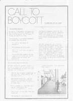 Call to boycott Pamphlet designed to elicit support from white residents in Grahamstown, in supporting the boycott of white-owned businesses as called by the residents of the "Grahamstown's African townships". The boycott was the third in 1985, and was intended to achieve specific outcomes, such as the end to the State of Emergency, the release of political detainees, and the lifting of the ban on public meetings.