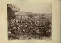 Laying of the foundation stone of the chancel of the Cathedral of St Michael and St George by the Governor Sir Henry Loch A note on the verso reads ' The laying of the foundation stone of the chancel of the Cathedral of St Michael and St George, Grahamstown, by His Excellency, Sir Henry Loch, GCMG KCB, Wednesday, 29th January 1890'. It shows a view from the north side of Church Square.