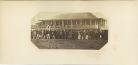 Race course, possibly Grahamstown, South Africa Although an inscription on the mount describes this as 'Grand stand, King William's Town', the building in question is however identical to that in a photograph by F.W. Hepburn of a race meeting in Grahamstown, taken in 1864, and held in the van der Riet collection at Cory Library.