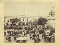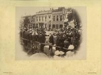 Laying of the foundation stone of the chancel of Cathedral of St Michael and St George, Grahamstown. View from south side of Church Square of the laying of the foundation stone of the chancel of the Cathedral of St Michael and St George by the Governor, Sir Henry Loch, on 29 January 1890. A photographer from Barraud Brothers is visible in the background.