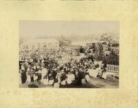 Race course, possibly King William's Town, South Africa Spectators at a race course, possibly in King William's Town, standing in front of the grandstand.