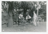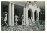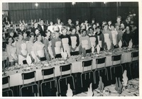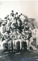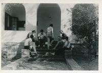Group of young people at Sunday tea, possibly outside Courtney Latimer dining hall -