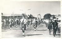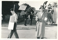 Pierre Lombard and Dave Hassio with marching band in Rag procession -