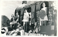 Oriel House float during Rag week, possibly Gail Martin and other young women on the float, 1966 -