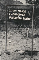 Fence with sign (Oxton-manor) A series of twenty photographs showing scenes of houses (new and old) and landscape of the Oxton and Zweledinga areas of resettlement under the forced removals policy, 1980. Most of the community settled here had voluntarily left Glen Grey and Herschel in 1976, to avoid incorporation into the Transkei homeland, only to be incorporated, at a later date, into Ciskei instead. These photographs were taken by Priscilla Hall.