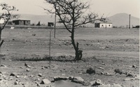 Tree in the center and on rural house on either side of the tree A series of twenty photographs showing scenes of houses (new and old) and landscape of the Oxton and Zweledinga areas of resettlement under the forced removals policy, 1980. Most of the community settled here had voluntarily left Glen Grey and Herschel in 1976, to avoid incorporation into the Transkei homeland, only to be incorporated, at a later date, into Ciskei instead.These photographs were taken by Priscilla Hall.