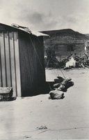 A pile of timber rods near some hill A series of twenty photographs showing scenes of houses (new and old) and landscape of the Oxton and Zweledinga areas of resettlement under the forced removals policy, 1980. Most of the community settled here had voluntarily left Glen Grey and Herschel in 1976, to avoid incorporation into the Transkei homeland, only to be incorporated, at a later date, into Ciskei instead. These photographs were taken by Priscilla Hall.