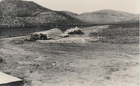 Gravel road with fence surrounding grass-trees and a hill A series of twenty photographs showing scenes of houses (new and old) and landscape of the Oxton and Zweledinga areas of resettlement under the forced removals policy, 1980. Most of the community settled here had voluntarily left Glen Grey and Herschel in 1976, to avoid incorporation into the Transkei homeland, only to be incorporated, at a later date, into Ciskei instead. These photographs were taken by Priscilla Hall.