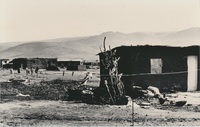 Houses in rural area with hills in the background A series of twenty photographs showing scenes of houses (new and old) and landscape of the Oxton and Zweledinga areas of resettlement under the forced removals policy, 1980. Most of the community settled here had voluntarily left Glen Grey and Herschel in 1976, to avoid incorporation into the Transkei homeland, only to be incorporated, at a later date, into Ciskei instead.These photographs were taken by Priscilla Hall.