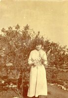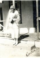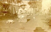 A location innocent A photograph album compiled by Mary Butler, containing photographs of Wayfarers, Sunbeams and Pathfinders, mostly in Cradock. Two newspaper clippings and a handwritten concert programme included. There are three photographs of Rev. James Arthur Calata's young daughters, and he himself is included in two photographs. This photograph showing a woman wearing a veil, her face is smeared with clay