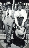 A man and a lady on camels