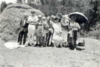 Sunbeams during St Andrews Day, 1930 A photograph album compiled by Mary Butler, containing photographs of Wayfarers, Sunbeams and Pathfinders, mostly in Cradock. Two newspaper clippings and a handwritten concert programme included. There are three photographs of Rev. James Arthur Calata's young daughters, and he himself is included in two photographs. This photograph is showing a church group of children, Sunbeams, with their officers during St Andrews Day camp, 1930