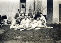 Wayfarers and their officers, 1935 A photograph album compiled by Mary Butler, containing photographs of Wayfarers, Sunbeams and Pathfinders, mostly in Cradock. Two newspaper clippings and a handwritten concert programme included. There are three photographs of Rev. James Arthur Calata's young daughters, and he himself is included in two photographs. This photograph shows a group of young girls, Wayfarers and their two officers wearing uniform