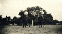 View of the Karel Landman Monument with F G Butler and Ken Robinson seated on the steps The Karel Landman Monument in the Sundays River Valley Rural, Eastern Cape, was designed by Gerard Moerdyk and built by the Lupini Brothers. It was unveiled on 16 December 1939 by W A L Landman. It honours Karel Landman who farmed in this area until 1837 when he became a leader in the Great Trek. He led a party of 180 Trekkers and their servants on a trek of 885 kilometres into Natal where he was prominent in several battles with the Zulus and he was second in command of the Boer forces at the pivotal battle of Blood River. The commemoration of Karel Landman and his trek, in this 3m globe with an ox wagon traversing it, was an initiative of the National Party and the councils of the Dutch Reformed Church in two neighbouring villages, Alexandria and Paterson. Legend has it that the councils could not agree which village should 'host’ the monument, so it was placed on this remote koppie overlooking the surrounding countryside, between the two villages.,F G Butler (donor)