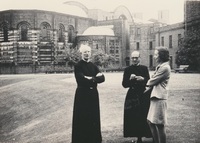 Jean Butler with Fr [Blamores] and Fr George [Sidebothem] at Mirfield, home of the Community of the Resurrection, 1974