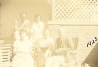 James Arthur Calata's daughter A photograph album compiled by Mary Butler, containing photographs of Wayfarers, Sunbeams and Pathfinders, mostly in Cradock. Two newspaper clippings and a handwritten concert programme included. There are three photographs of Rev. James Arthur Calata's young daughters, and he himself is included in two photographs. This photograph showing one of James Arthur Calata's daughters standing on the stoep. J.A. Calata had three daughters, namely, Nontsikelelo, Noluthando and Vuyiseka (born in 1922)