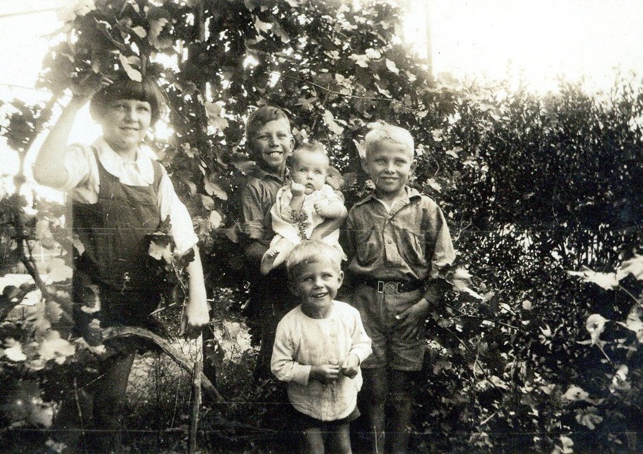 Lynne, Arthur holding Cecily, Rex and Kingsley infront