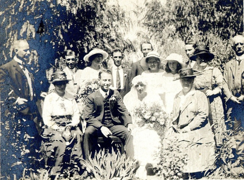 - Standing: Charles Butler, Dick Brown, Grace, Milner Brown, Douglas and Evelyn Butler, Dot, Joe Butler, May Brown, Jackie Brown, seated: Charles and Emma Butler, Harold and Ruth Butler, Mrs Brown