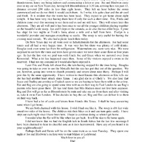 - Charles Butler, 1864-1949, wrote letters to family members, mostly his children, between 1932 until his death in 1949. During these years travelling with his wife, visiting family members in Kroonstad, Cape Town, Bloemfontein, Vryburg and also went on holiday trips. Their permanent address was 34 Dundas Street, Cradock, where they lived until the death of his wife, Mary Emma Butler, 1862-1947, who died in 1947. He then moved and stayed with his daughter Grace and her family in Kroonstad, 47 Reitz Street. During this time Charles and Grace visited relatives in Vryburg, Cape Province. Towards the end of 1948 when Charles's health deteriorated they stayed with family in Uitenhage to be close to the doctors and hospital. Charles Butler was buried in Cradock with his wife.