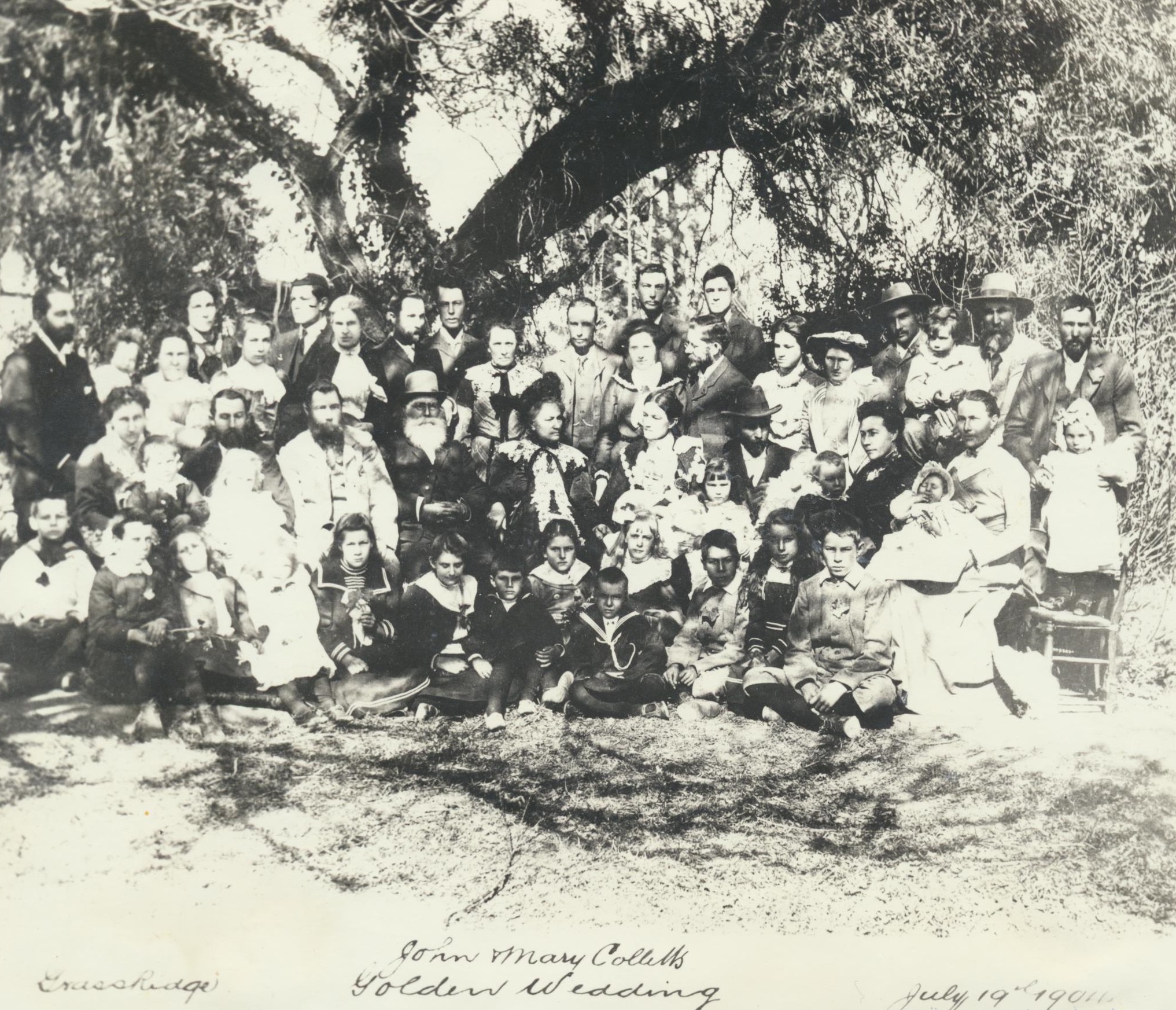 - Collett family photograph taken by W W Lidbetter on the occasion of the Golden Wedding of John and Mary Collett at Grass Ridge, 1904. Copy made by Lawford, East London 1970.