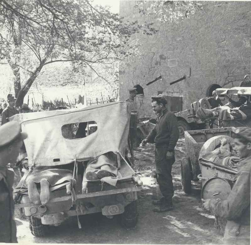 - Ambulance jeep evacuating casualties from First City/Cape Town Highlanders, Italy, October 1944