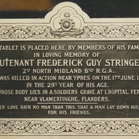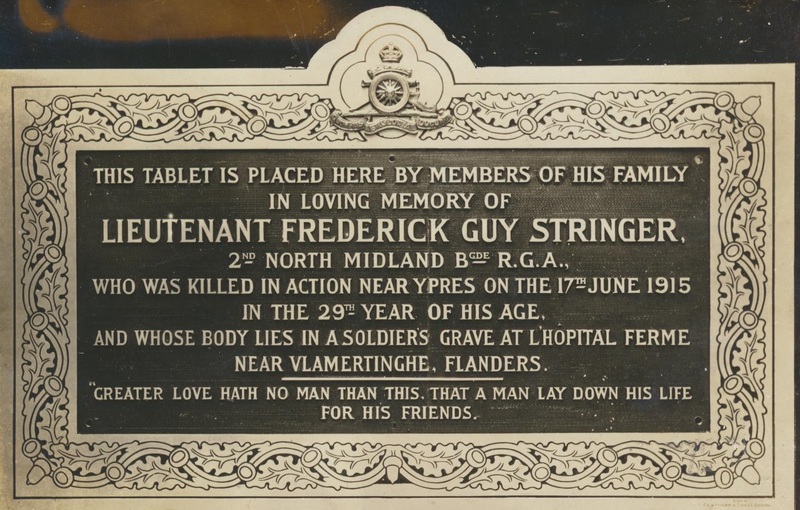 Lieutenant Guy Stringer: plaque in memory, ca. 1915