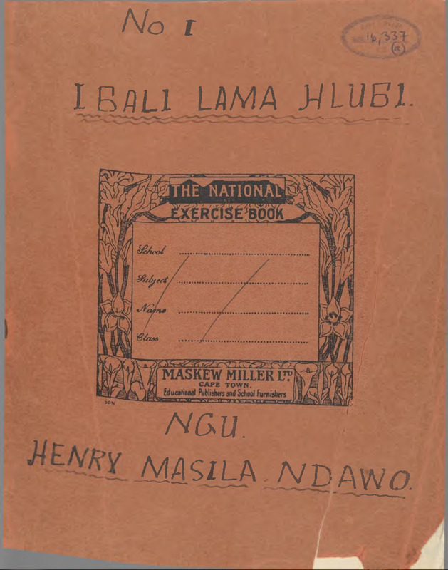 - Author's original handwritten text of Ibali lamaHlubi. The book was written in school-type exercise books.