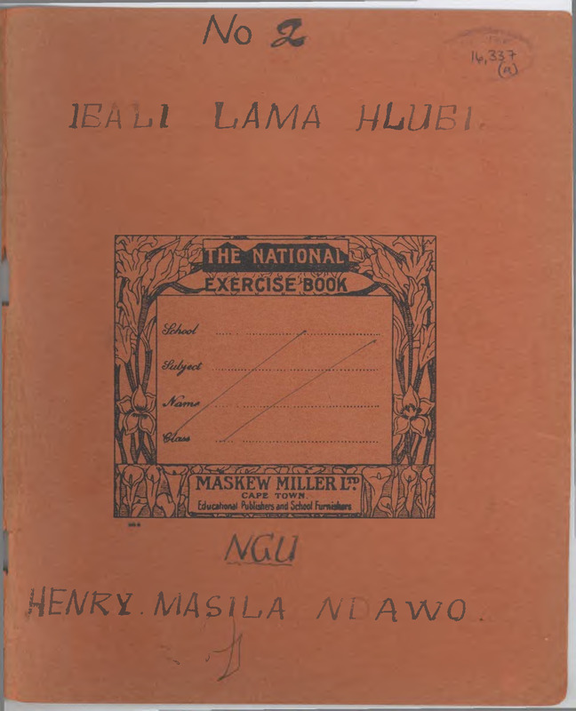 - Author's original handwritten text of Ibali lamaHlubi. The book was written in school-type exercise books.