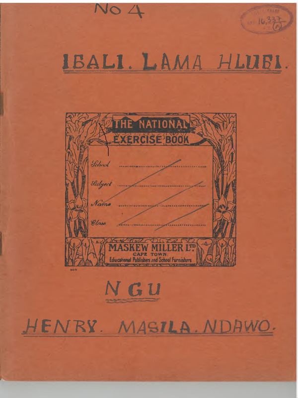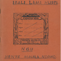- Author's original handwritten text of Ibali lamaHlubi. The book was written in school-type exercise books.