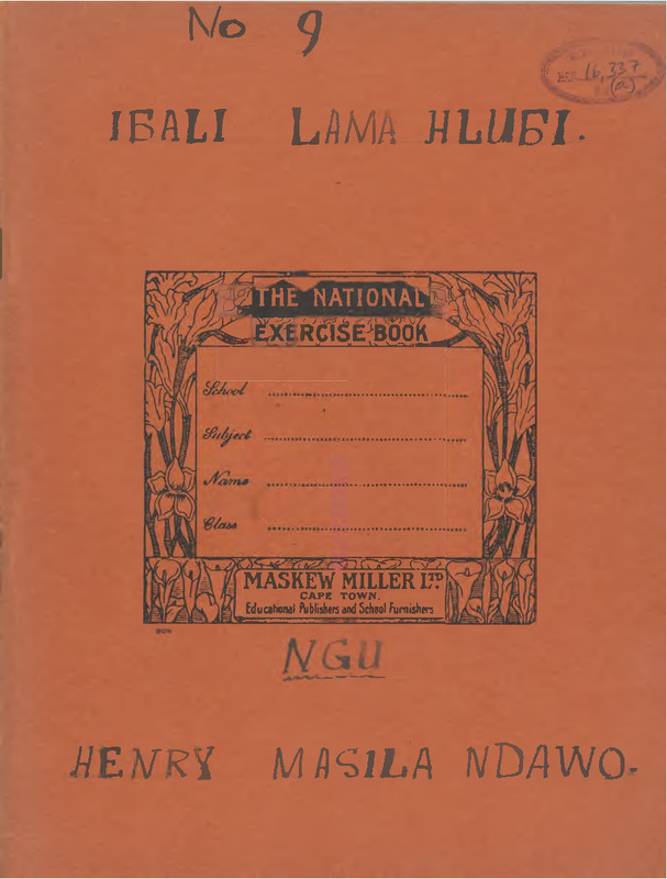 - Author's original handwritten text of Ibali lamaHlubi. The book was written in school-type exercise books.