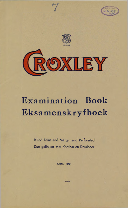 - Original held at Cory Library for Humanities Research, situated at Rhodes University.