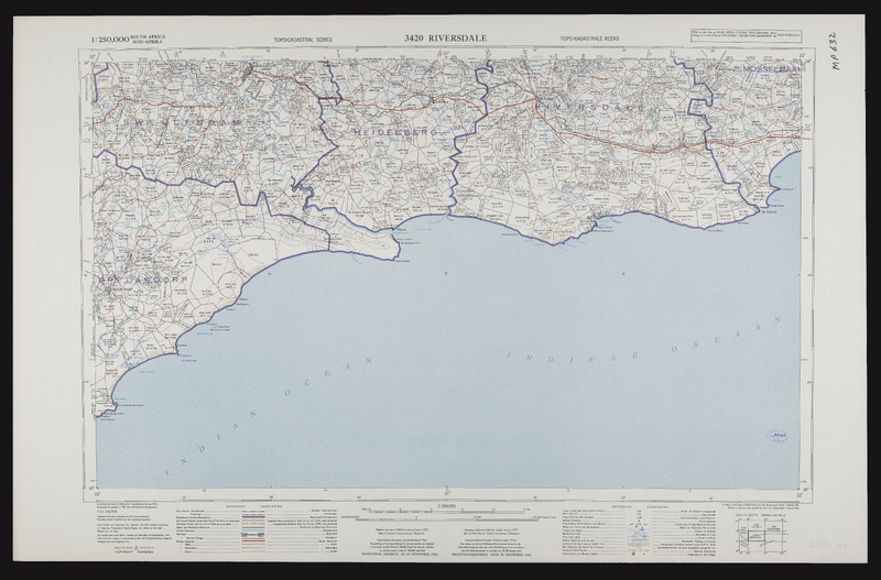 Trigonometrical Survey (South Africa), “3420 Riversdale, Riversdale 3420, Topo-cadastral series, Topo-kadastrale reeks”, Government Printer, Cory Library and Historical Archives, accessed 29 December 2025, https://digitalarchives.ru.ac.za/s/cory/item/10644