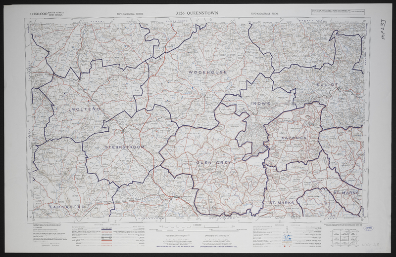 - 3126 Queenstown, South Africa 1:25000 sheet. Compiled and drawn in 1960 by the Trigonometric Survey Office. Magisterial districts as at March 1966. T.S.O. 404/964. (Saamgestel in 1960 en geteken in 1960 deur die Driehokesmatings Kantoor.)
